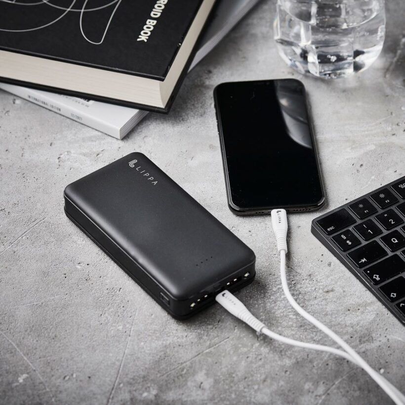 Lippa 20. 000 mAh powerbank er perfekt til dem, der altid er på farten. Denne powerbank kan give 4-8 opladninger til dine enheder afhængigt af enheden. Den er let og nem at bære, så den fylder ikke meget i din taske eller lomme. Du kan oplade powerbanken via USB-C-indgangen eller Micro-USB-porten. LED-indikatorerne viser, hvor meget strøm der er tilbage på powerbanken.