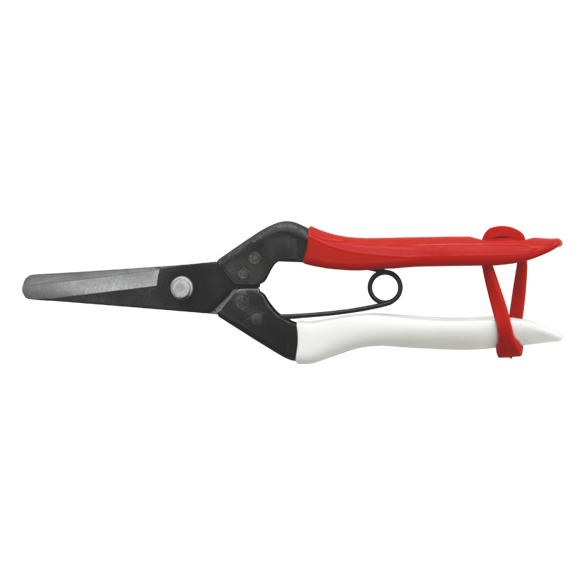 Fortyndingssaks med afrundet spids for at forhindre skader.